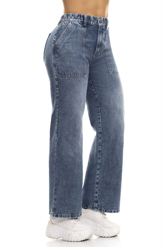 10068 Jean cargo stretch efecto levanta cola, tiro super alto color azul medio oscuro